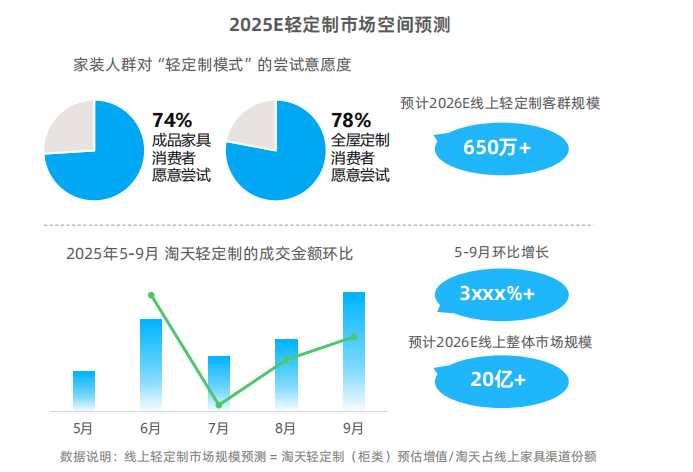 最新数据显示,现在行业全体面对“获客难、成本高、同质化合作”的窘境。2024年新房成交仅810万套,天猫正式发布“轻定制”模式新概念。价钱和合作日益激烈,并发布《2025年天猫“轻定制”行业趋向》。显著跨越了同期1006万套的新房拆修量,天猫首发四大AI模块,年轻租客对证量取审美的逃求,成为家拆市场新的焦点增加极。