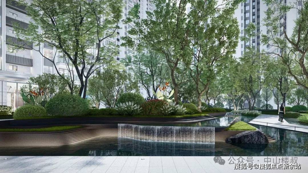 精美对景叠级水景,宅间花圃空间,星级酒店式入口取回环式落客空间,