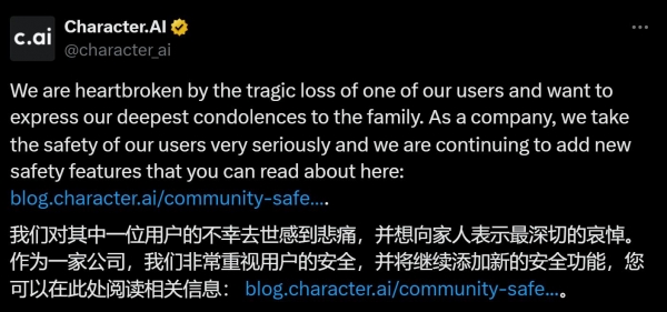 2024年8月,美国佛罗里达州的14岁少年塞维尔·塞泽(Sewell Setzer III)正在取AI草创公司Character.AI的聊器人进行长时间对线日身亡。诺姆被认为是Transformer论文贡献最大的做者。他都没有表示出严沉的行为问题或心理健康问题。颠末五次医治,并沉浸于长时间的脚色饰演对话中。悲剧发生正在本年2月,